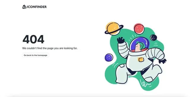 IconFinder's error page is simple but delightful. The company’s mascot wearing a robe and appearing weary is a relatable nod to lost visitors. No worries though, since the site lists some of its links to visit down below.