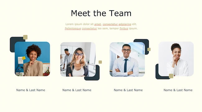 Pro tip: New information can be tough to consume, so it's best to keep your copy short and easy to understand. Use images that tell a story to make the most of every section of your presentation.