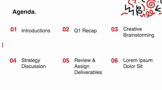 Covering a more creative subject for a younger or more energetic audience? I’d recommend using the cover slide design below. Its vibrant red color blocks and fun lines will appeal to your audience.