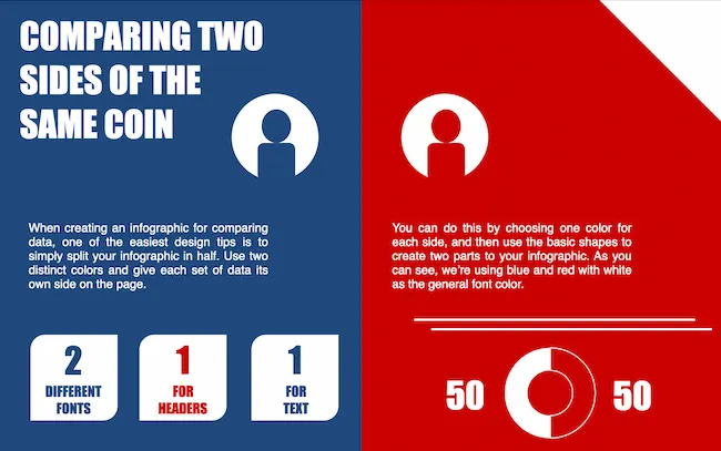 14. Use contrasting colors when comparing two ideas or arguments.
