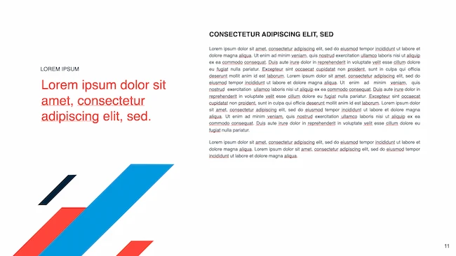 This is one of my favorite PowerPoint design ideas because it uses graphic elements such as lines and bars to give structure, contrast, and modern flair to your slides.