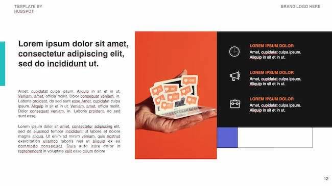 Using a PowerPoint presentation template can help you clearly communicate the details that make your company's brand, logo, typography, colors, imagery, and design one of a kind.