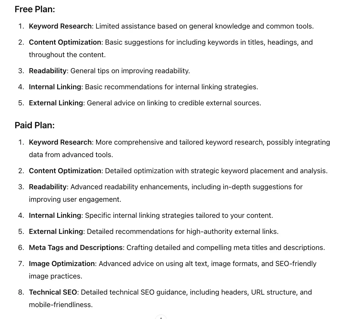 There are two types of ChatGPT SEO limitations – those that stem from AI shortcomings as a whole, and those that depend on whether you’re using a free or paid version. Let’s take a deeper dive into this.