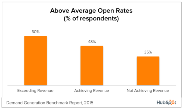 60% of those exceeding their revenue goals had an above-average open rate, while the same was true for only 48% of those achieving their revenue goals and 35% of those not achieving their goals.