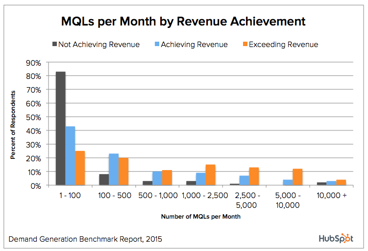 91% of companies not achieving their revenue goals generate 500 MQLs or less per month