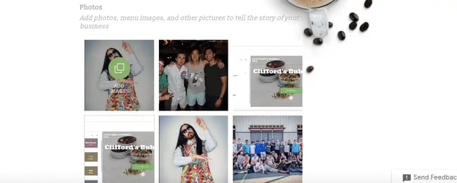 In the Photos tool, you can upload up to nine photos, product images, or other pictures to the section on your website directly below the summary body. You can also upload your own cover photo to your website.