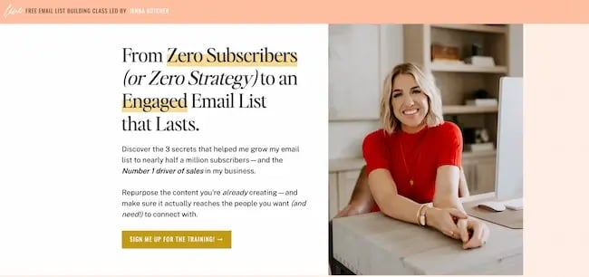 While the following advice is for someone who already has a list they want to grow, if you need to start yours from scratch, I can help you catch way up to speed (like pro-level, but the easy way) in my free one-hour masterclass, "From Zero Subscribers (or Zero Strategy) to an Engaged Email List that Lasts." Let me show you how to algorithm-proof your business, once and for all.