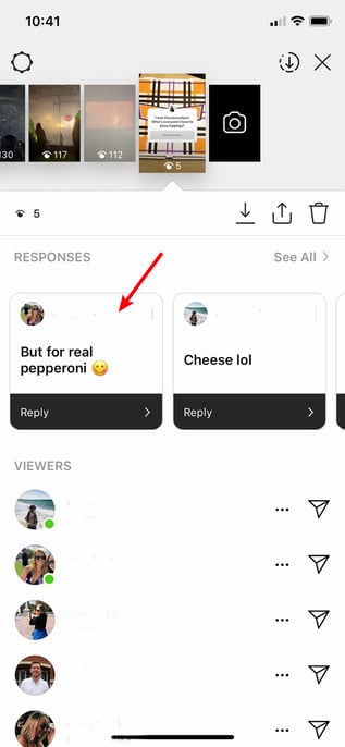 6. You'll see "Responses" above the list of people who've seen your post. To individually share one to your Story, click on it.