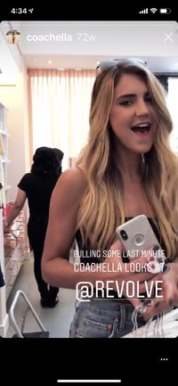 This benefits her because she may gain some audiences from Revolve fans who tune into the story. But, Revolve can also gain brand awareness from her without having to create their own Story content.