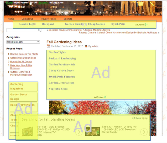 In addition, excessively intrusive advertisements that block your actual content or interfere with the user experience are also likely to harm your search rankings. For example, here’s a web page layout in which the imagery is intrusive, not helpful: