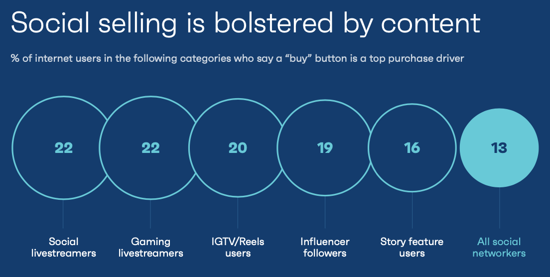 - 13% of social networkers say a “buy” button is one of the top purchase drivers. (GWI, 2020)