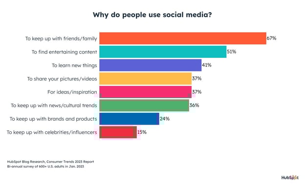 As the only social media platform on this list geared towards professionals, it's no surprise that the top reason people use LinkedIn is to learn new things. About 1 in 4 LinkedIn users also log on to keep up with news or trends, brands and their products, and their network of friends and family.