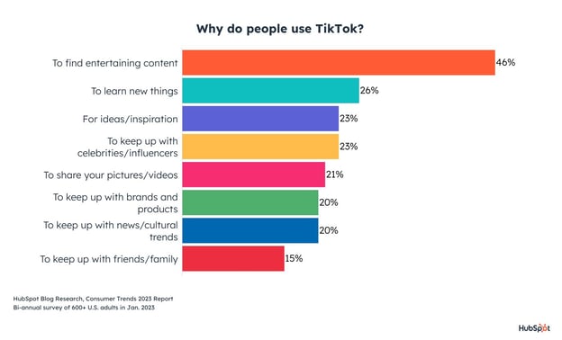 TikTok users watch a mix of entertaining, educational, and inspirational content.
