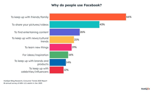 Facebook users primarily keep up with loved ones -- but also like to share media on their feeds.