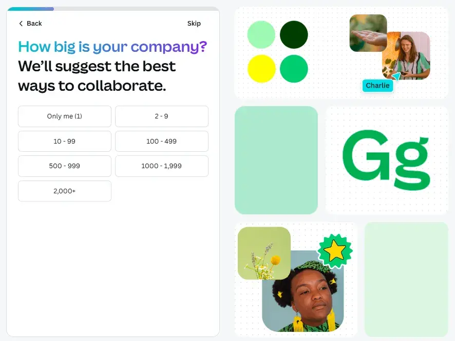 Make sure to tie every question to a clear benefit. Canva does an excellent job at this by clarifying how they'll use the info required: