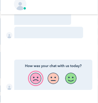 CSAT (customer satisfaction score) measures customer satisfaction with a business, purchase, or interaction … and, in this case, with chat. There are three response options: happy, neutral, and sad.