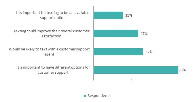 Additionally, eWeek reports that 52% of people said they'd likely text with a customer support rep if given the option. And, 52% would prefer to text a customer support rep over their current preferred mode of communication.