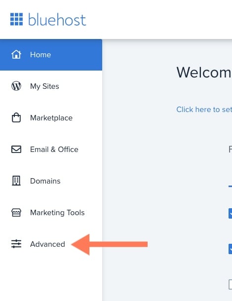If my hosting provider gives me access to my cPanel, I can also generate a CSR using its tools. First, I access my cPanel via my hosting provider. When I use Bluehost, my cPanel is located under “Advanced.”