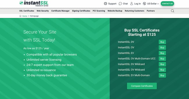 Instant SSL is another option that deserves your attention. Unlimited server licensing, 24/7 support, and unlimited re-issuance are among the features included in their SSL certificate options.