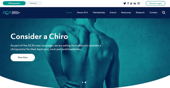 What we love: While specific businesses own most websites here, the Australian Chiropractors Association’s website is more of a directory to help patients find nearby services. We love how the website makes this clear immediately with its outstanding CTA design and placement.