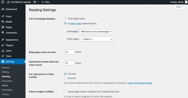 In order to create a static homepage on your WordPress site, follow the steps below or check out this video:
