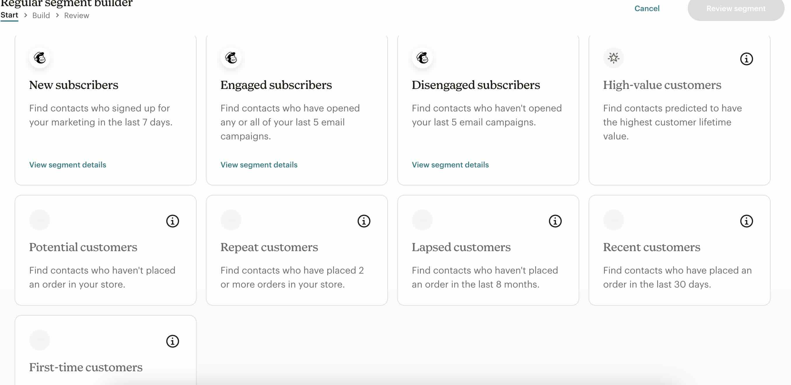 These email marketing tools let you segment your subscribers, schedule email campaigns, track email open rates, and run A/B tests to optimize your subject lines and messaging. For businesses with large email lists, I’d recommend Mailchimp simply because of its impressive segmentation options based on subscribers’ email responsiveness and buying history.