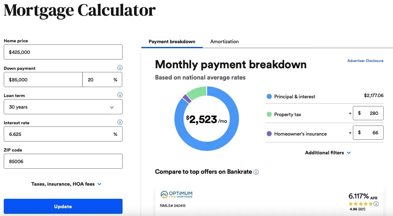 Depending on the type of tool you offer, you could even use it to collect customer emails or promote other aspects of your business — such as how Bankrate’s mortgage calculator provides an estimated monthly payment breakdown that it then compares to top offers from partner mortgage companies.